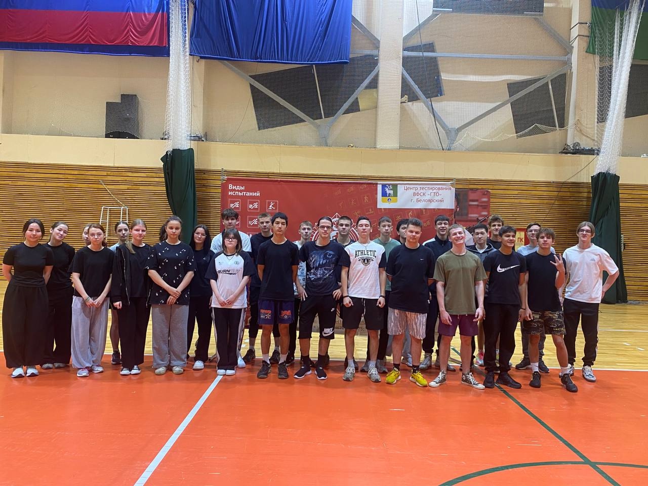 На базе МАУ «Дворец спорта» приняли участие 59 учащихся девятых, десятых и одиннадцатых классов МАОУ Белоярского района «СОШ 1 г.Белоярский» в выполнении нормативов Всероссийского физкультурно-спортивного комплекса «Готов к труду и обороне» (ГТО):