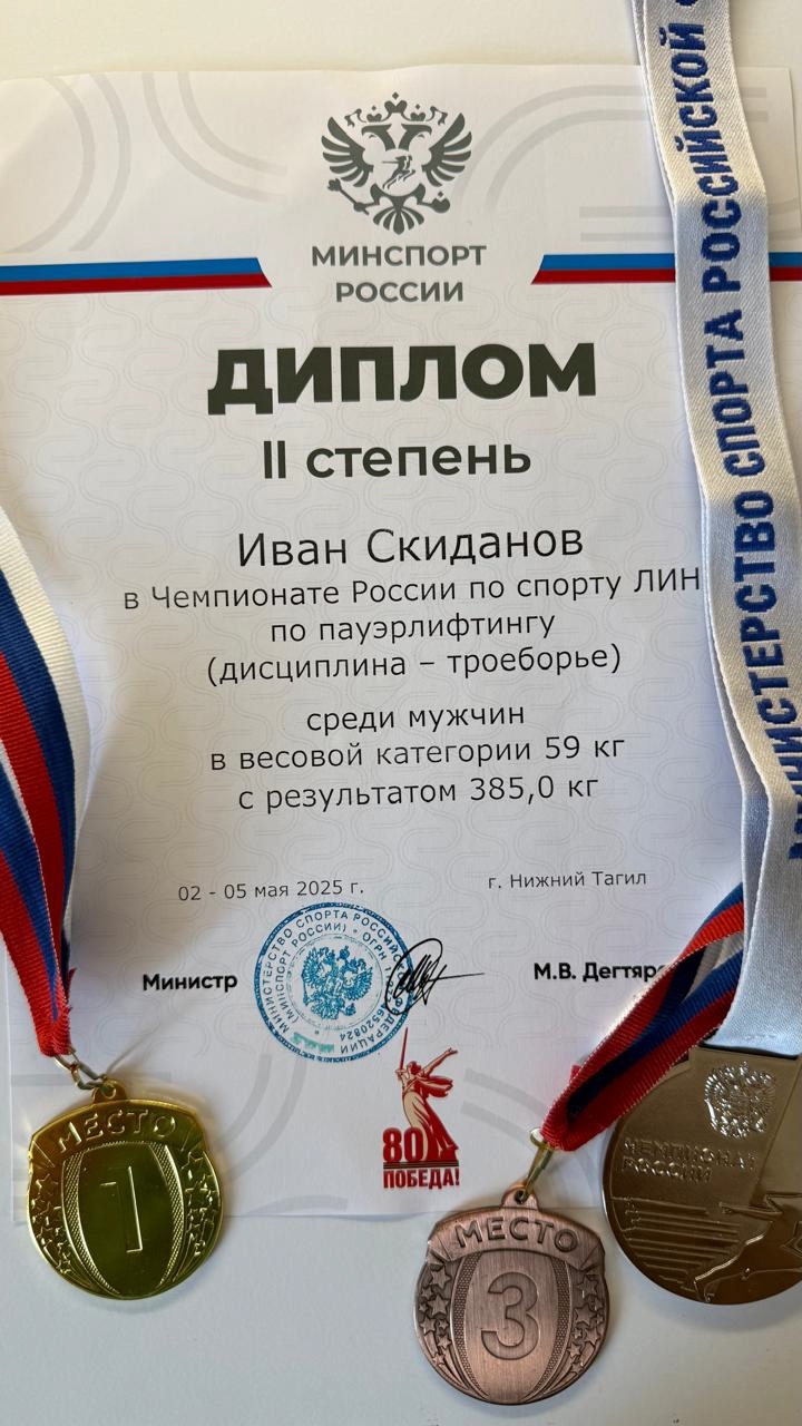 Иван Скиданов достойно выступил на Чемпионате России, продемонстрировав высокий уровень подготовки и невероятную силу духа. В упорной борьбе с сильнейшими соперниками Иван занял 2 место