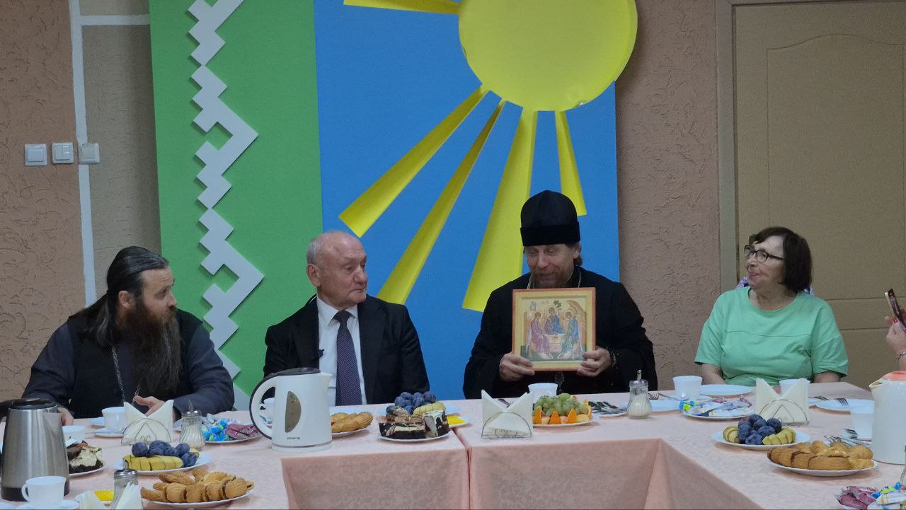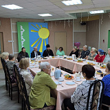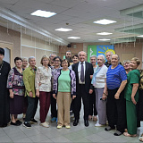В ходе встречи, Сергей Маненков, поздравил с 80-летним юбилеем отдыхающую Людмилу Баженову и вручил ей памятный подарок, отметив, что её жизненный путь является примером стойкости духа, мудрости и неиссякаемой энергии.