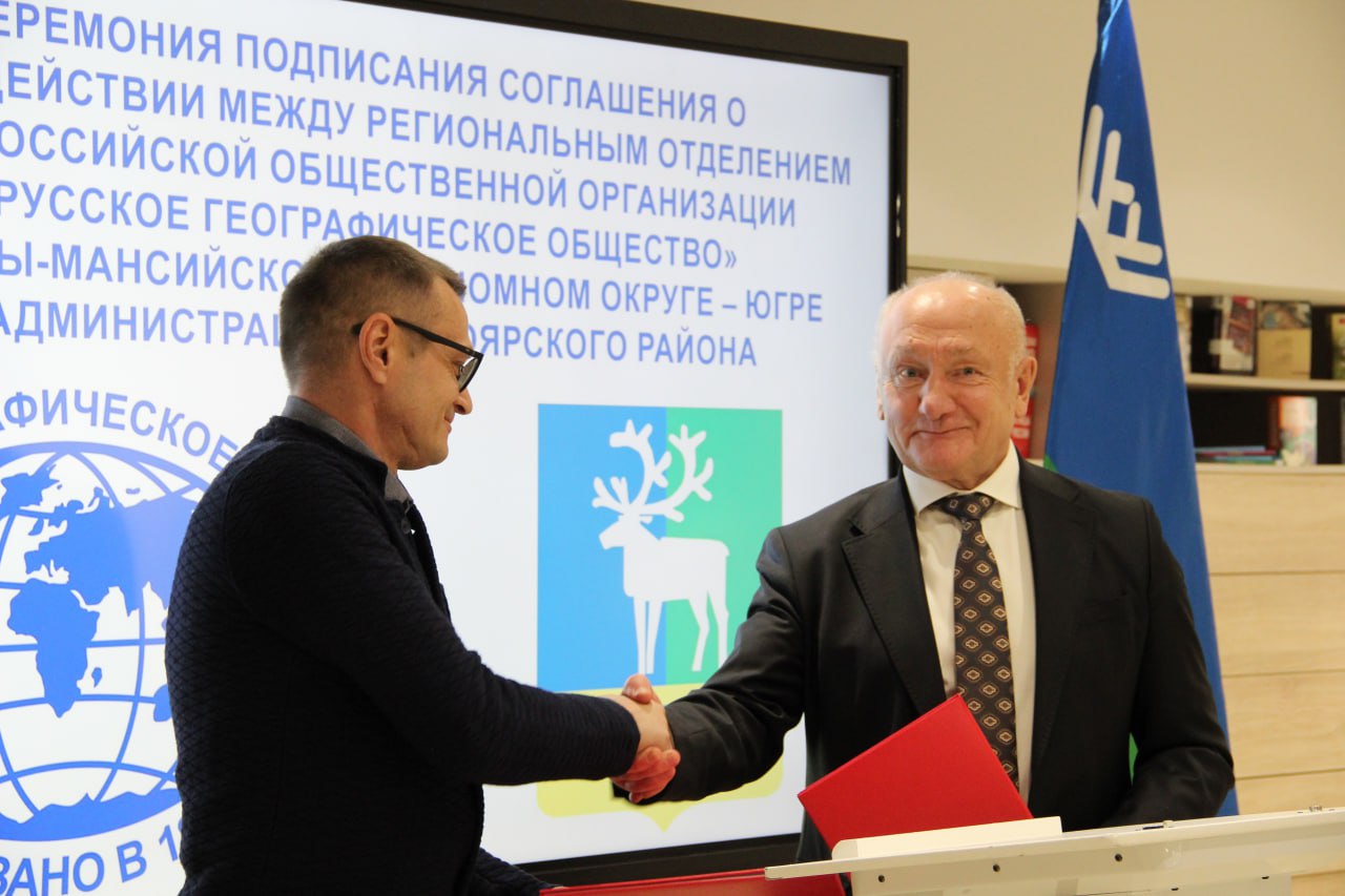 Вначале было подписали Соглашение между Администрацией района и отделением Русского географического общества в Югре о сотрудничестве, нацеленном на изучение истории и географии края.
