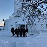 Первая встреча состоялась на территории Свято-Троицкого Кондинского монастыря с настоятелем Свято-Троицкого архиерейского подворья игуменом Алипием.