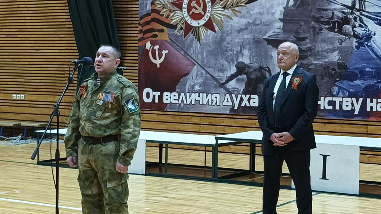 Сегодня в стенах Дворца спорта глава района приветствовал участников молодёжного военно-патриотического конкурса «Пламя»