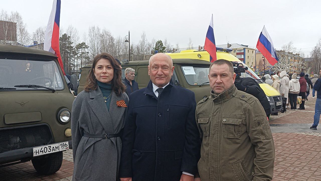 Сегодня на площади перед Центром культуры и досуга «Камертон» глава района вместе с руководителями организаций, секретарём местного отделения партии «Единая Россия» Андреем Германовичем Берестовым, общественными организациями «Совет ветеранов» и «Надежда», участниками СВО отправили пять автомобилей: четыре УАЗ «Буханки» и одну машину скорой помощи в г. Алчевск для госпиталя.