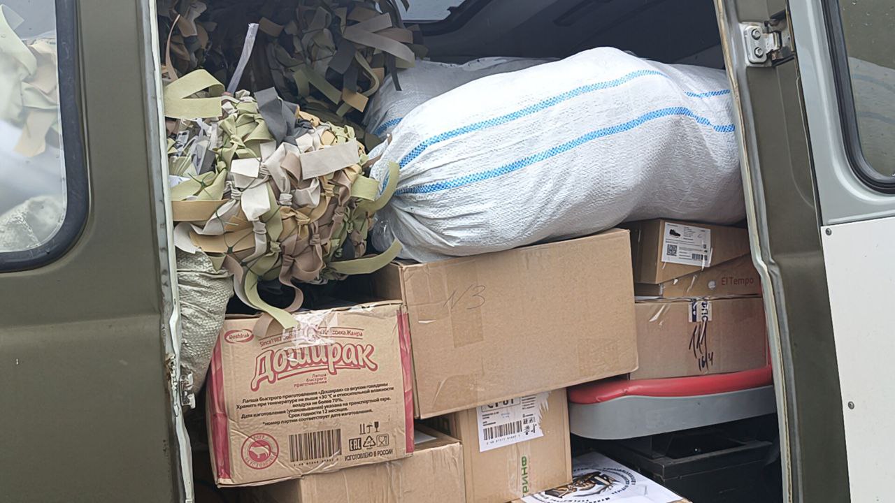 Во всех транспортных средствах отправлена гуманитарная помощь, включая посылки для солдат, электростанцию, антидроновое ружьё, маскировочные сети и предметы первой необходимости.
