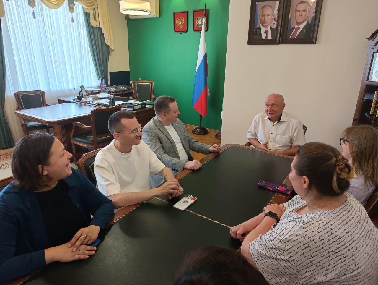 Сегодня глава района лично встретился и пообщался с участниками делегации, в состав которой вошли: Иван Хлебников, начальник управления по молодёжной политике Департамента молодежной политики Югры; и представители АНО «Молодежный центр Югры» - Константин Криворученко, начальник отдела развития и продвижения молодёжных инициатив; Янина Товт, начальник отдела организации профилактической работы; Екатерина Худякова, специалист отдела реализации молодёжных мероприятий, Екатерина Копаткина, главный специалист центра развития добровольчества.
