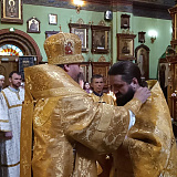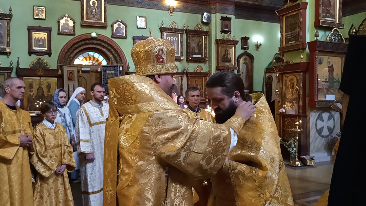 Владыка вручил от его Святейшества Патриарха Московского и всея Руси Кирилла богослужебно-иерархическую награду - право ношения креста с украшениями протоирею Максиму Дурневу, штатному клирку нашего храма, за усердное служение церкви.