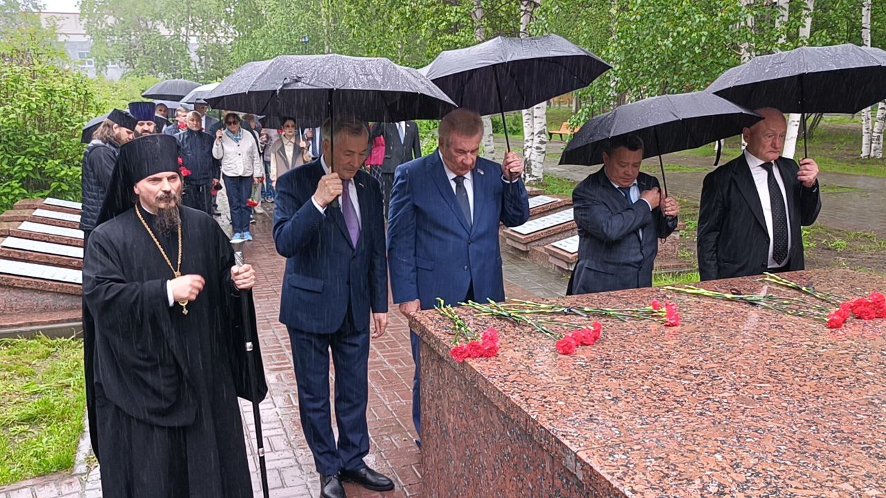 Очередным мероприятием в рамках визита делегации стало возложение цветов к Вечному огню в мемориальном комплексе «Парк Победы» в честь 80-летия со Дня Великой Победы, в котором принял участие епископ Югорский и Няганский Михаил. Владыка провел молебен.
