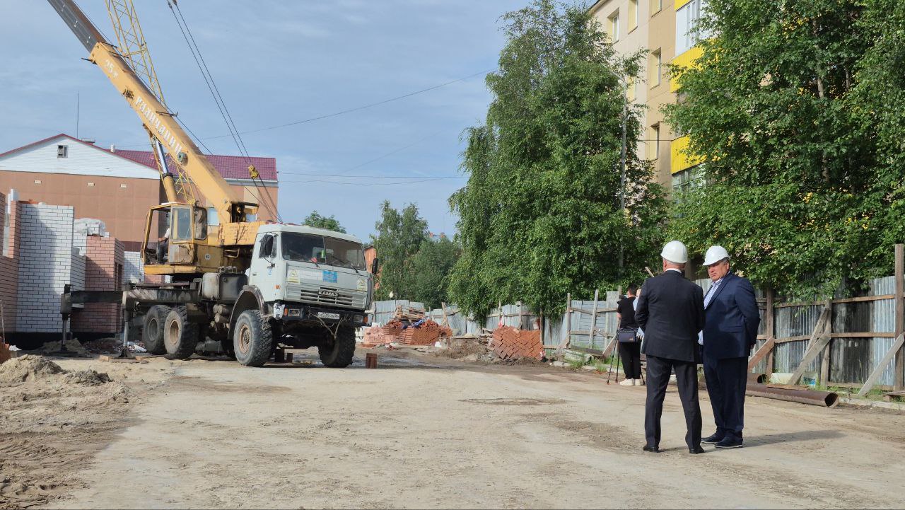 Сегодня Сергей Маненков провёл выездное совещание на строительной площадке 3-этажного жилого дома в 1 мкр-не города