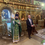 Сергей Маненков принял участие в Божественной литургии, которую совершили протоиерей Максим Дурнев и представители духовенства Белоярского благочиния. Поздравил всех с праздником. Подарил православному приходу храма сертификат на 100 тыс.руб.