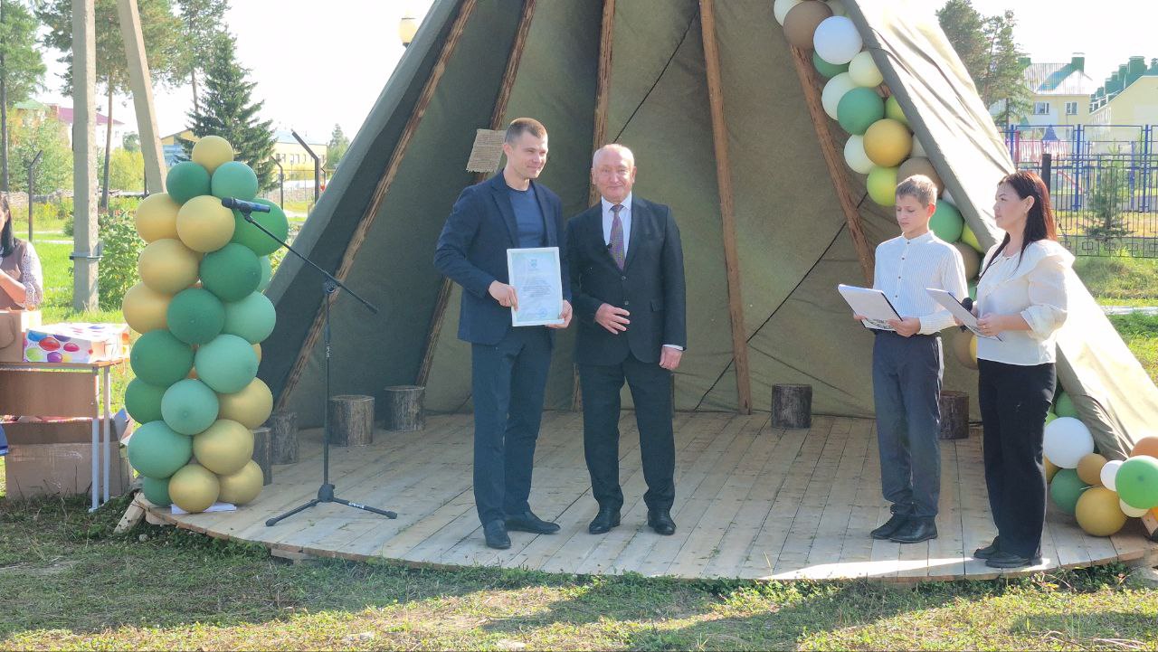 Вместе с исполняющей обязанности главы поселения Людмилой Емельяновой и исполняющим обязанности начальника Сорумского ЛПУ МГ Александром Дроздовым Сергей Маненков открыл новую площадку.