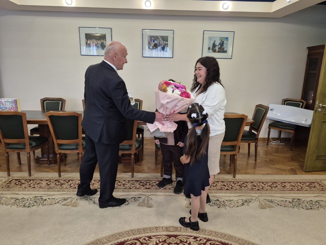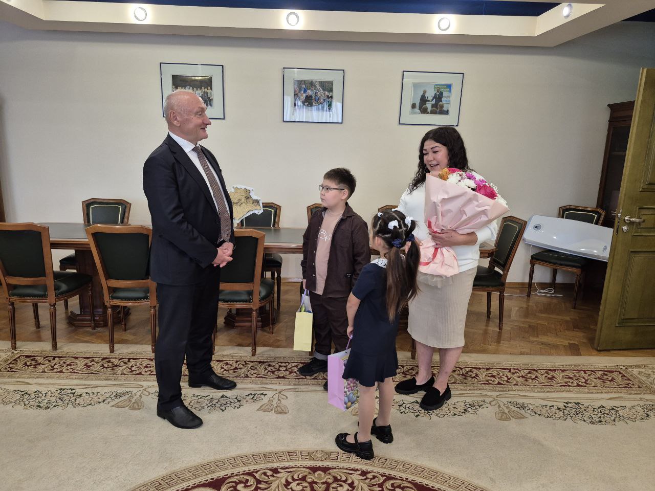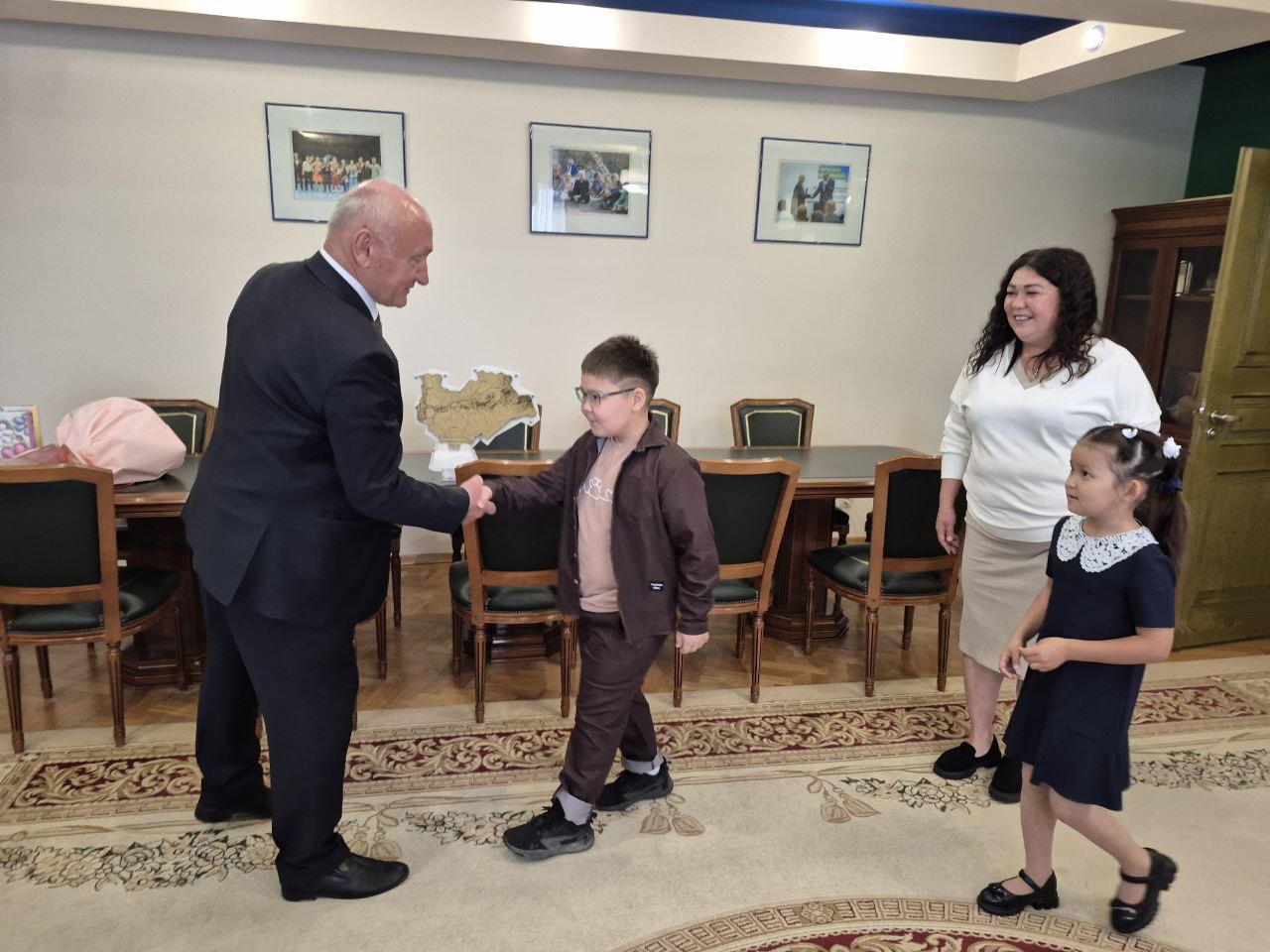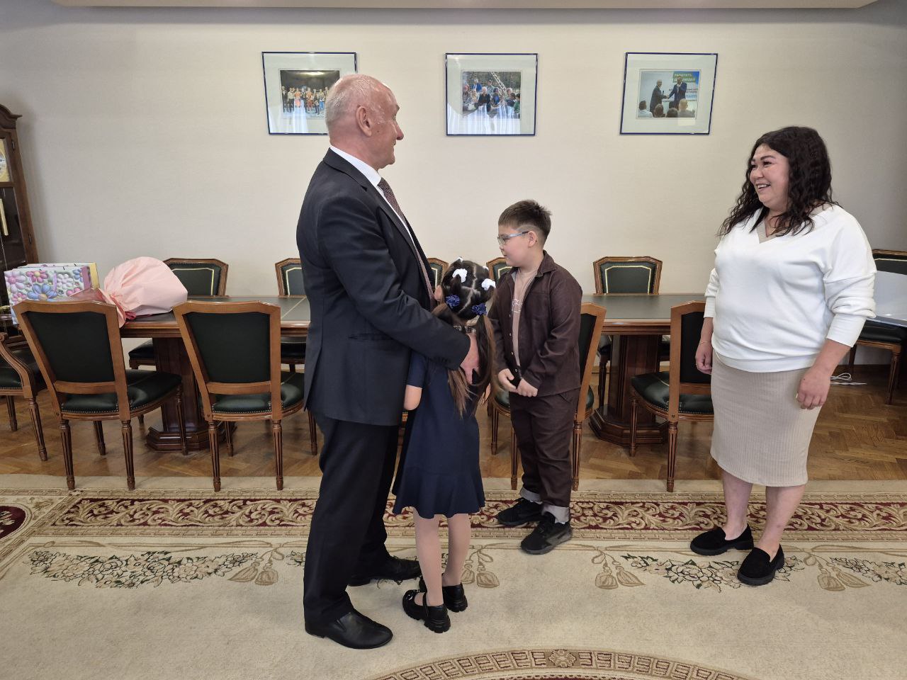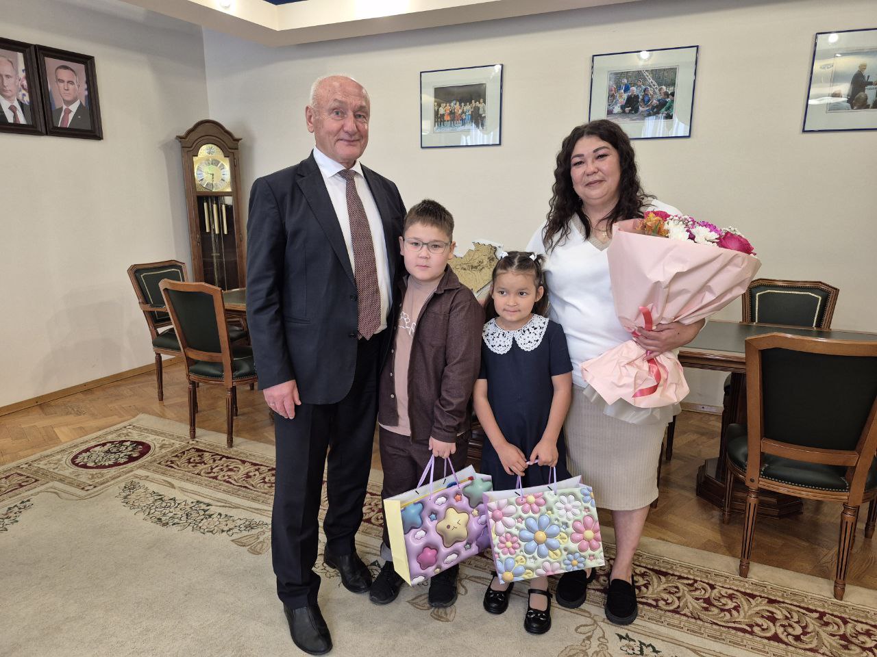 В рамках ежегодной акции «Собери ребенка в школу» Сергей Маненков сегодня поздравил с предстоящим Днем знаний дочь и сына участника СВО Рауфата Марганова
